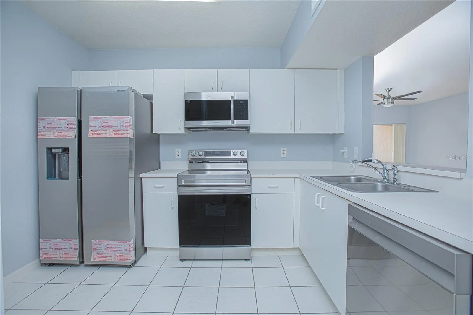 Welcome to this beautifully updated 3-bedroom, 2-bath Traditional Garden-Style Condo in the desirable Villa Del Sol at Meadow Woods, Interior Features with spacious 1,200 sq ft open floor plan with family-friendly layout and abundant natural light. Newer kitchen appliances including refrigerator, range, dishwasher and microwave — perfect for everyday cooking and entertaining. New washer and dryer in-unit laundry for convenience and efficiency. Comfortable living room flows to a large, screened porch with water/pond views, ideal for morning coffee or evening relaxation. Ceramic tile and quality flooring throughout main living areas; bedrooms have quiet space and ample closet storage. Neutral paint and updated fixtures provide move-in readiness. A gated community offering resort-style living just minutes from major highways, Orlando International Airport, shopping and dining.