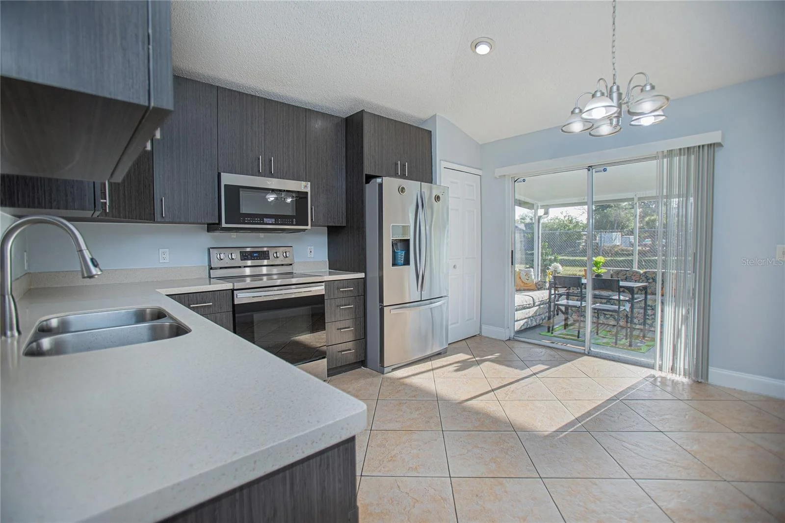 Welcome to this beautiful 4-bedroom, 2-bath home filled with upgrades and designed for comfortable Florida living. Featuring tile flooring throughout and freshly painted interiors, the home offers a bright and move-in-ready atmosphere. The spacious eat-in kitchen is a highlight, showcasing newer cabinetry, granite countertops, stainless steel appliances, and two pantries for ample storage. The primary suite includes two closets, while the additional bedrooms are equipped with ceiling fans for added comfort. You’ll also find two linen closets and a convenient laundry area with a washer and dryer (2023). Step outside to enjoy the screened lanai, pergola, and serene water view—perfect for relaxing or entertaining. The yard is enhanced with solar-lit trees, adding charm to the outdoor space. Major updates include a roof installed in 2023, along with a newer AC system and water heater, providing peace of mind for years to come. Located in a community with low HOA, this home offers both value and convenience. Don’t miss the opportunity to make this well-maintained, upgraded home yours!